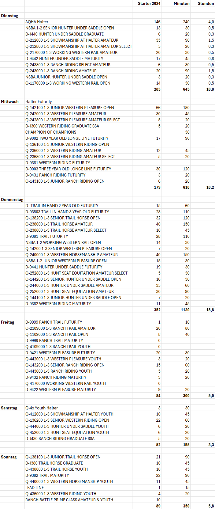 W. Horsemanship auf den Freitag vorgezogen. Davon betroffen sind