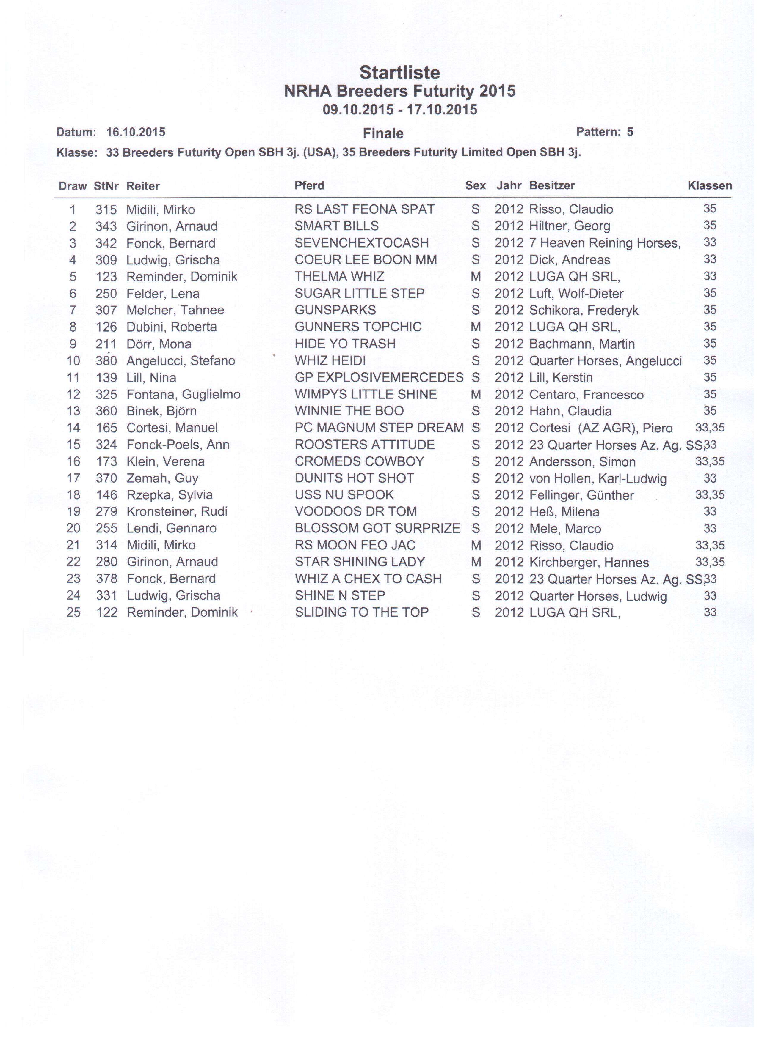 ab dem Jahr 2016 angedacht. Für Vorschläge kann die NRHA Germany