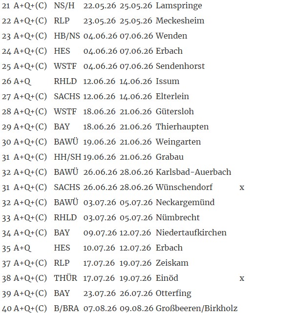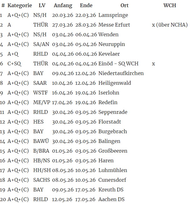 Die Erste Westernreiter Union (EWU) hat jetzt die Termine und Orte für die 40 Qualifikationsturniere der Saison 2026 zur German Open bekannt gegeben (siehe hier).