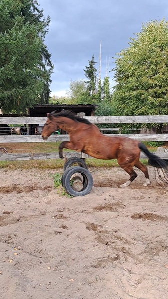 Er ist seit 27 Jahren an meiner Seite und mein Seelenpferd, wir sind durch viele Höhen aber auch viele Tiefen gegangen. Aktuell geht es ihm wieder blendend und er genießt sein Rentnerleben. Er wird nur noch etwas geritten und altersgerecht bewegt.